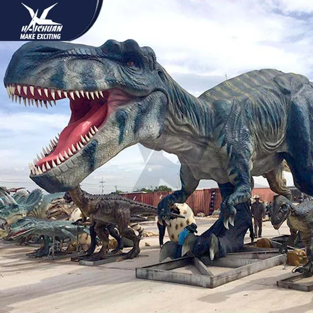 Çelik çerçeve, yüksek yoğunluklu köpük ve silikondan yapılmış, T-Rex'in görünümünü, hareketini ve sesini taklit edebilen, sizi Jura dünyasında hissettiren simüle edilmiş bir dinozordur.